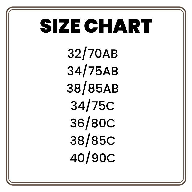 Size: 32/70AB, 37/75AB, 36/80AB, 38/85AB, 34/75C, 36/80C, 38/85C, 40/90C, 42/95C